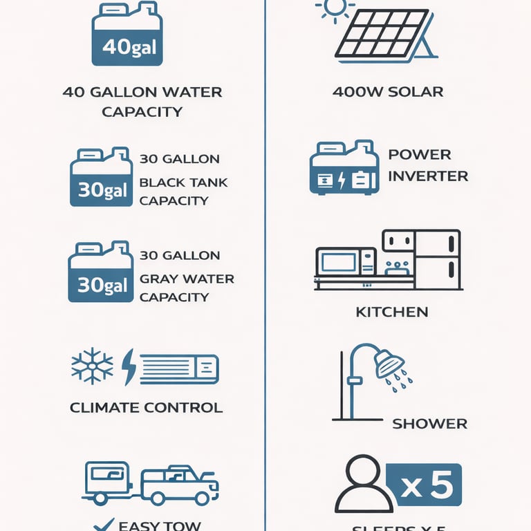 Perfect for extended stays, dispersed camping, and remote campsites.