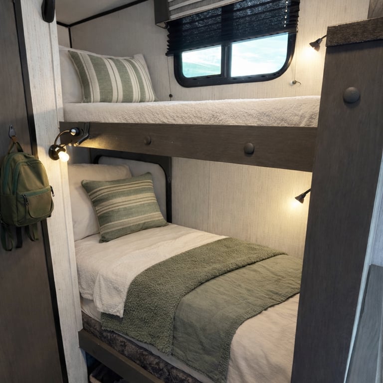Sleeps 5 (two bunks, one dinette, one full size queen)